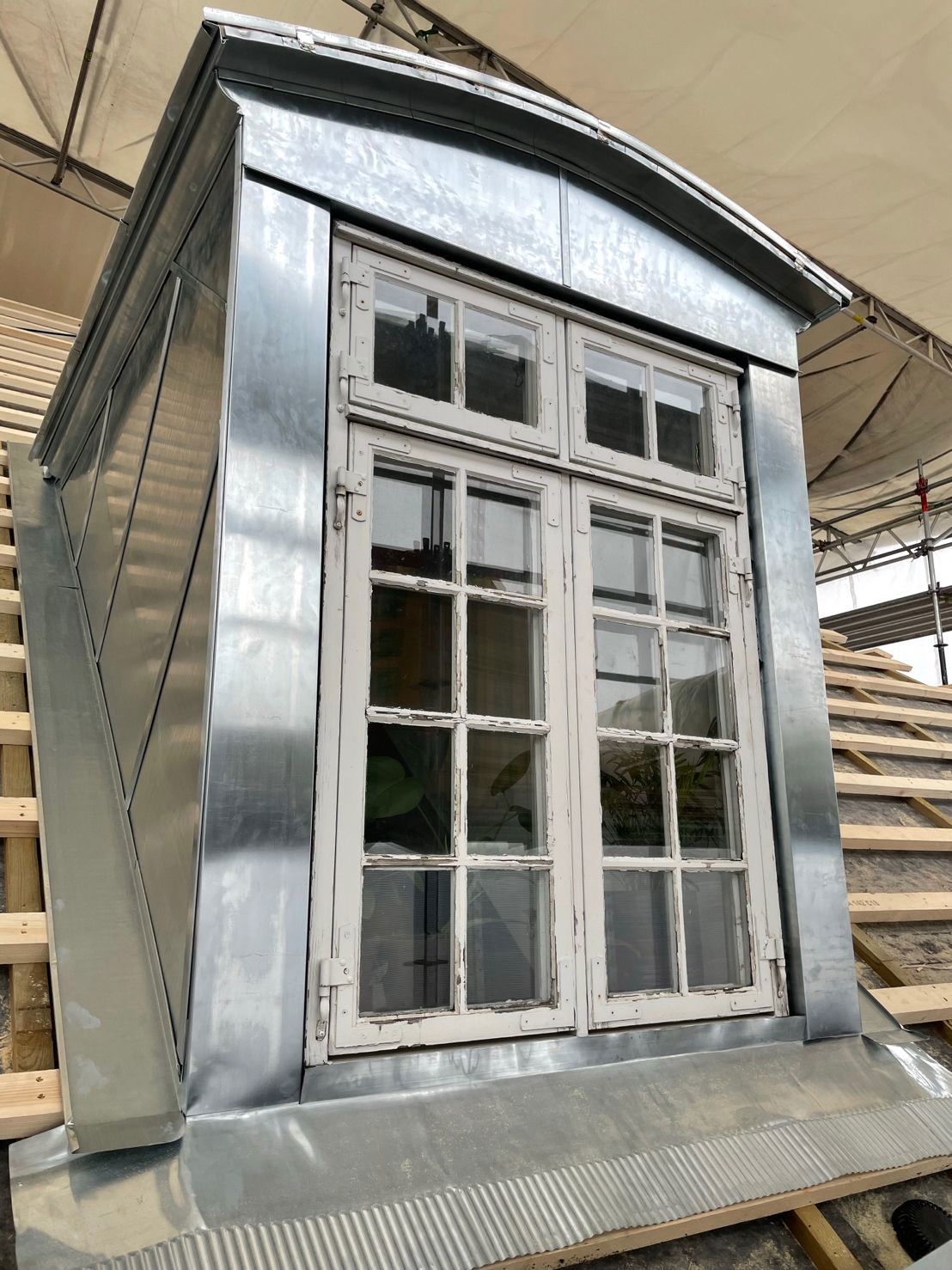 Slutteligt er samtlige nedløb og tagrender udskiftet og udført i kobber i stil med resten af bygningen.