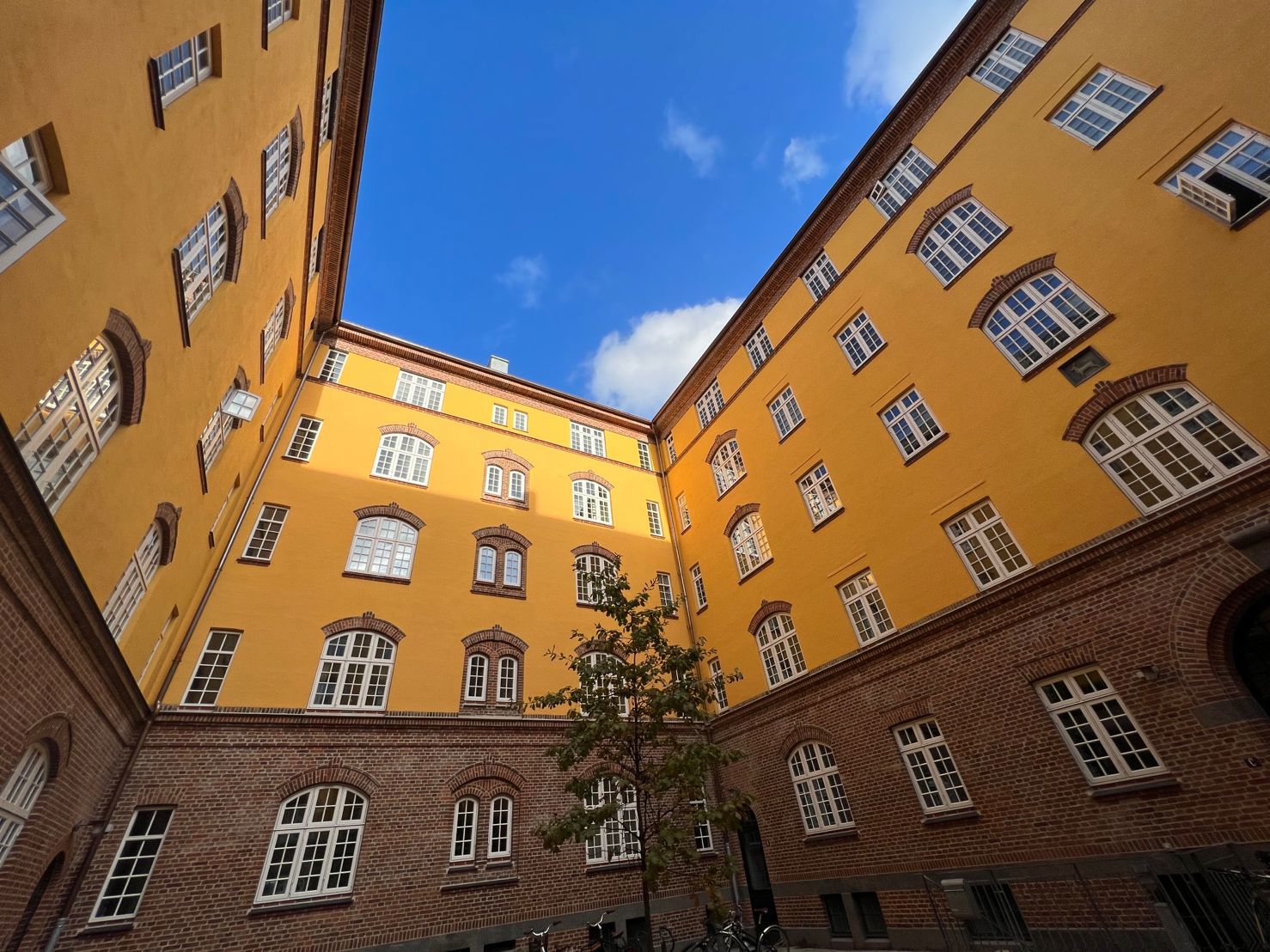 Blegdamsgården i København har været under en totalrenovering, som både har forbedret bygningens udtryk samt optimeret bygningens energimærke.